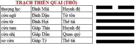 Lấy Càn long làm nội quái, lấy hướng Đoài/Đinh/Tị/Sửu là ngoại quái thành quẻ Trạch Thiên Quải.