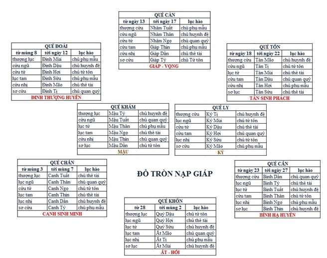 Công thức sử dụng quẻ dịch "Bát quái nạp can chi" theo nguyên tắc sau: