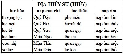 • các phương nạp thủy cát tường là: Hợi - Càn; Quý - Sửu; Giáp - Mão; Ất - Thìn.
