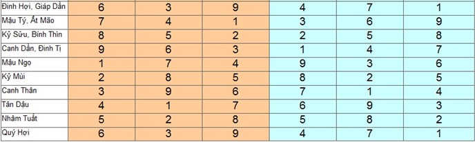 cách này theo chi năm mà tính, cửu tinh đi nghịch, theo bảng như sau: