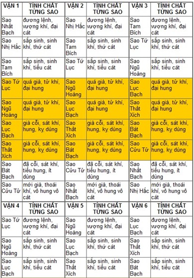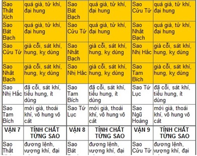 BIỂU SAO CỬU TINH TRỰC NHẬT THEO NĂM .