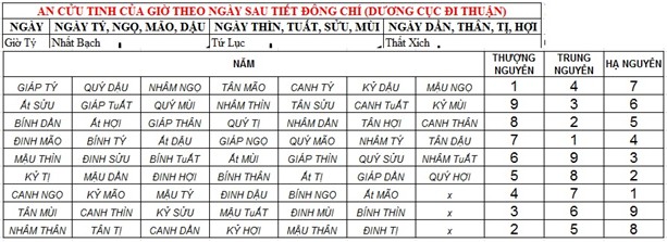 12.6 BIỂU NĂM, THÁNG, NGÀY, GIỜ CỬU TINH TRỰC NHẬT.