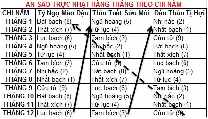 BIỂU SAO CỬU TINH TRỰC NHẬT THEO THÁNG .