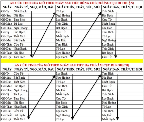 Khẩu quyết trên có nghĩa như sau: muốn khởi cửu tinh trực nhật của giờ phải lấy ngày làm căn cứ: