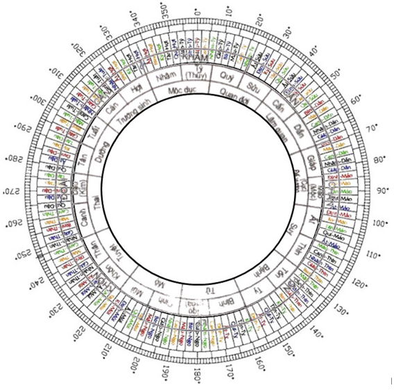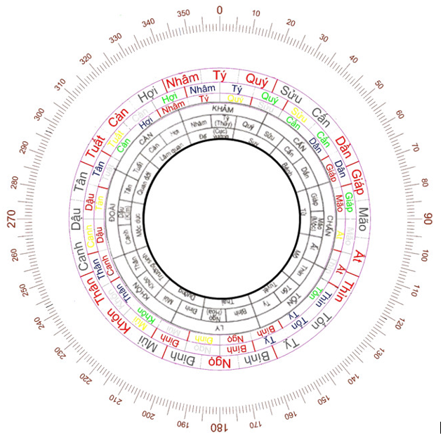 Vòng địa bàn chính châm 120 phân kim : Tọa Canh Tuất – Hướng Canh Thìn.