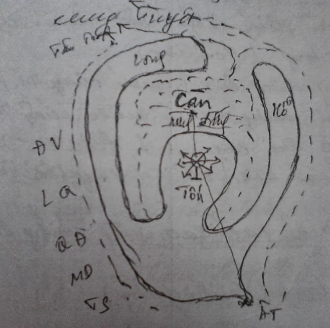 * Nếu nước chảy từ trái sang phải , qua trước mặt , rồi tiêu ra chữ Quý - Sửu thì là Âm Kim cục - Lấy Đinh quản cục.