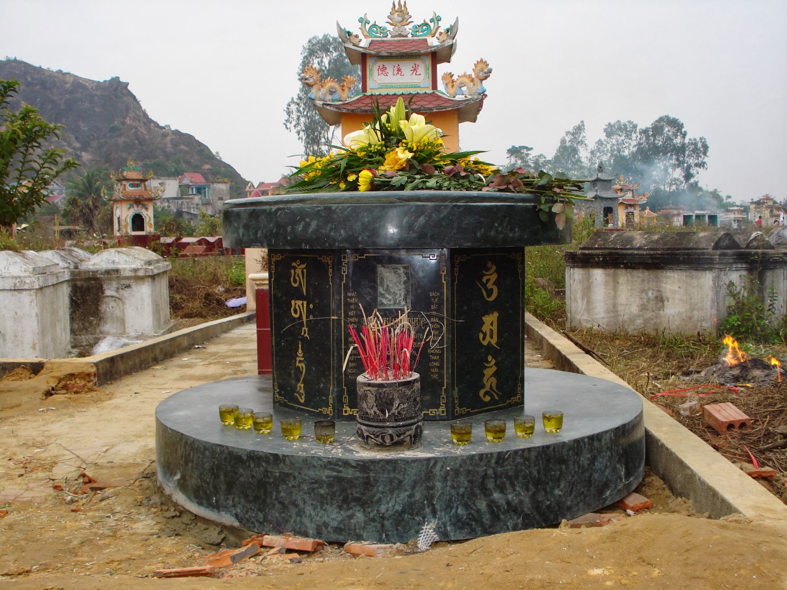 Như vậy, mộ có thể xây hình tròn hay hình chữ nhật đều được, nhưng xây tròn thì vẫn hơn. Có một nguyên tắc cần nhớ là trên mộ phải có cỏ xanh. Đó là cửa giao lưu thông thoáng Âm Dương giúp cho mộ luôn nhận được Sinh khí và cân bằng Âm Dương khí.