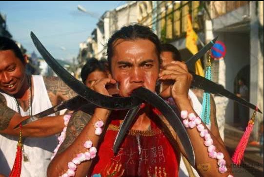 Lễ hội được tổ chức tại Phuket, tập trung những tín đồ đạo Phật và những người lập nên kỷ lục thế giới về môn xâu vật sắt vào người. Năm nay, lễ hội có sự tham gia của đội xiên lình Shrine of Jui Tui đến từ Trung Quốc. Họ trình diễn những màn đâm dao vào mặt, lấy cán ô đâm vào má, xâu khung xe đạp vào người...