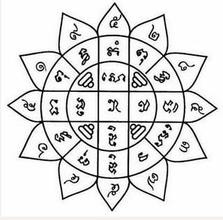 Dòng bên trong lá Bùa có nghĩa là Hộ mệnh cát tường. Các đường kéo vào từ bên ngoài tượng trưng cho rốn của đức Phật .Vòng Talisman là có nghĩa là khuôn mặt của Đức Phật. Brahman - Đề cập đến sự hiện diện của tam Thần Brahma. Tam Thần Thần biểu thị cho đức Phật hoặc tất cả ba thế giới - Các Brahman, có nghĩa rằng tất cả ba mặt Brahman là Thần Shiva, Brahma và Vishnu. Bốn hình ngoài cùng có nghĩa là bốn châu lục hoặc bốn yếu tố đất, nước, gió, lửa. Ý nghĩa trong các bức ảnh của hình xăm là hình ảnh Thiên thần, người và động vât.