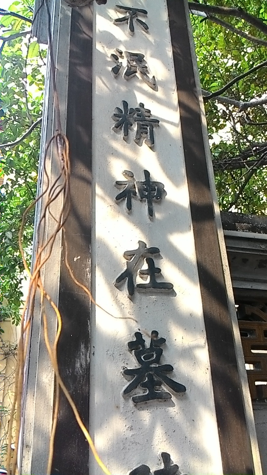 Trước cổng và hai bên có rất nhiều trụ khắc các câu đối .
