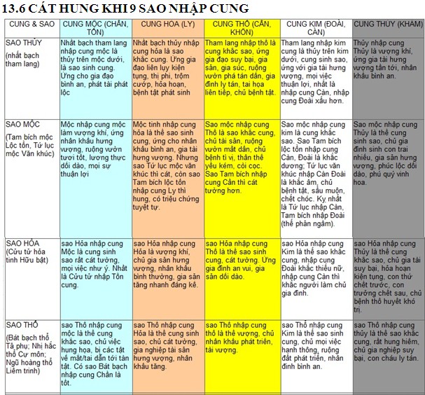 -Với 3 hướng TỐN-THÌN-HỢI thì dùng sao Vũ Khúc (tức số 6) nhập trung cung thay thế.