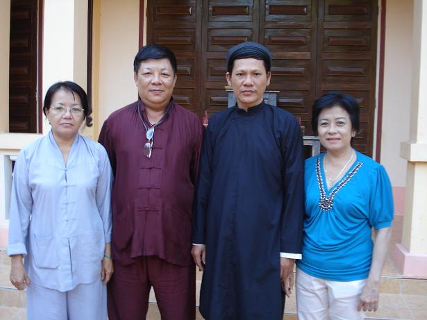 Lần này, đoàn của dienbatn tới thăm một người bạn là Mười Trác ( Nguyễn Ngọc Trác ) là trưởng gánh trong 24 gánh tại thôn An Định nơi Thánh Địa của Đạo Tứ Ân Hiếu Nghĩa. Từ sáng sớm , thày Mười đã điện cho chúng tôi hẹn về sớm để ăn cơm cùng một đoàn từ thiện từ TP. HỒ CHÍ MINH mới xuống. Loanh quanh mãi bên Châu Giang , Thị xã Tân Châu , mải mê nghe chuyện về lễ hội " đâm xuyên quai " mãi tới tối mịt chúng tôi mới tới được Tam Bửu Gia là ngôi chùa do Thày Mười trụ trì. Thày Mười là Trưởng gánh ở khu vực này , có nhiệm vụ ghìn giữ mối Đạo trong vùng và làm những công việc về Quan - Hôn -Tang- Tế cho đồng bào trong khu vực. là một người đàn ông trạc ngoài 40 cao lớn , tráng kiện và rất đẹp trai. Gia đình Thày Mười đã nhiều đời nắm giữ mối Đạo trong khu vực này. Đón chúng tôi hết sức niềm nở thân tình , Thày chỉ cho chúng tôi chỗ tắm rửa thay đồ và giục người nhà dọn cơm cho chúng tôi ăn. Chùa này sở dĩ có tên Tam Bửu Gia là do nằm dưới sự chỉ đạo của Tam Bửu Tự như dienbatn đã giới thiệu ở phần trên. Ngày xưa Đức bổn sư Ngô Lợi có 24 vị đệ tử ruột cận kề cho đến khi viên tịch và là trưởng gánh của 24 gánh. Sau này do chiến tranh ly tán , chỉ còn khoảng 5,6 gánh là đúng theo danh chính ngôn thuận , còn các gánh khác chưa thực sự là những gánh theo đúng ý nghĩa của ngày trước. Hiện nay có khoảng 6 Tam Bửu Gia còn đang hoạt động, giữ ghìn riềng mối Đạo Tứ Ân Hiếu Nghĩa trong vùng. Cơm xong , chúng tôi ngồi quanh bàn trà đàm Đạo thật vui vẻ. Thày Mười là một người có tư chất hành Đạo , thông minh , tế nhị và hiểu biết rất sâu về bổn Đạo của mình. Ngồi một chút , dienbatn thấy Thày có điện thoại liên tục do những người dân trong vùng gọi tới kêu Thày làm giúp các việc Quan , Hôn , Tang , Tế. Thày kể cho chúng tôi nghe công việc hàng ngày của mình. Có nhiều lần mấy Thày trò phải nhảy xe đò đi giúp những đám tang , khi xong do thân chủ quá nghèo lại tự bỏ tiền ra đi về . Là người chăm sóc phần tâm linh trong một khu vực nghèo như Ba Chúc , Thày và các vị phụ tá vẫn phải tự làm ruộng nuôi thân hành Đạo . Cách đây vài năm , Thày Mười đã một thân một mình sang thăm các vị Thánh Tổ tại dãy núi Tà Lơn bên Cămpuchia. Nhiều chuyện ly kỳ và nhiều ân sủng của Thày Tổ đã đến với Thày Mười.Hàng ngày Thày và các đồng Đạo tại đây vẫn công phu ngày bốn thì : Tý - Ngọ - Mão - Dậu hết sức nghiêm túc. Đêm đó , dienbatn và Thày Mười gần như không ngủ để đàm đạo . Sáng hôm sau , vì Thày bận công chuyện giúp một đám tang cho bà con trong vùng , chúng tôi cùng Thày lên chùa chụp ảnh kỷ niệm và lại tiếp tục lên đường. Thày Mười tặng cho dienbatn mấy cuốn sách hay được Thày sử dụng trong công việc của mình.