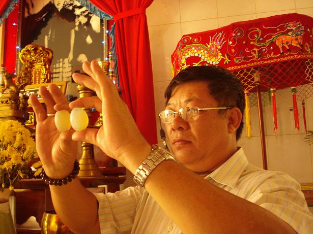 Hai viên ngọc của Phật Trùm người ta mới tìm được hơn một năm nay khi sửa miếu Phật Trùm.