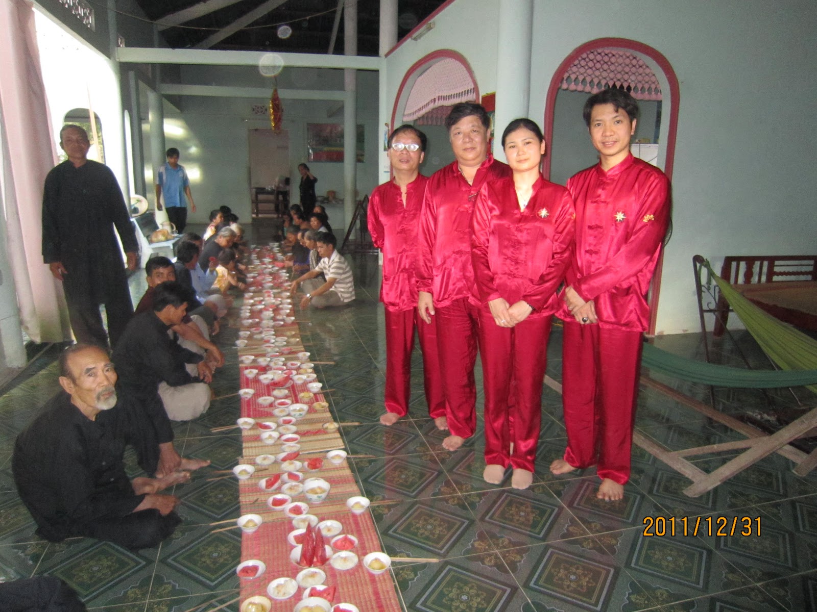 Hai thành viên là Hoàng và Đông bay từ Hà Nội vào sân bay Cần Thơ, sau đó đi xe khách đến Châu Đốc rồi bắt xe ôm vào Ba Chúc, nhanh lắm cũng phải 2g chiều ngày 9 Tết mới có mặt. Do vậy buổi lễ đầu tiên xếp cho Đoàn vào vào buổi chiều.