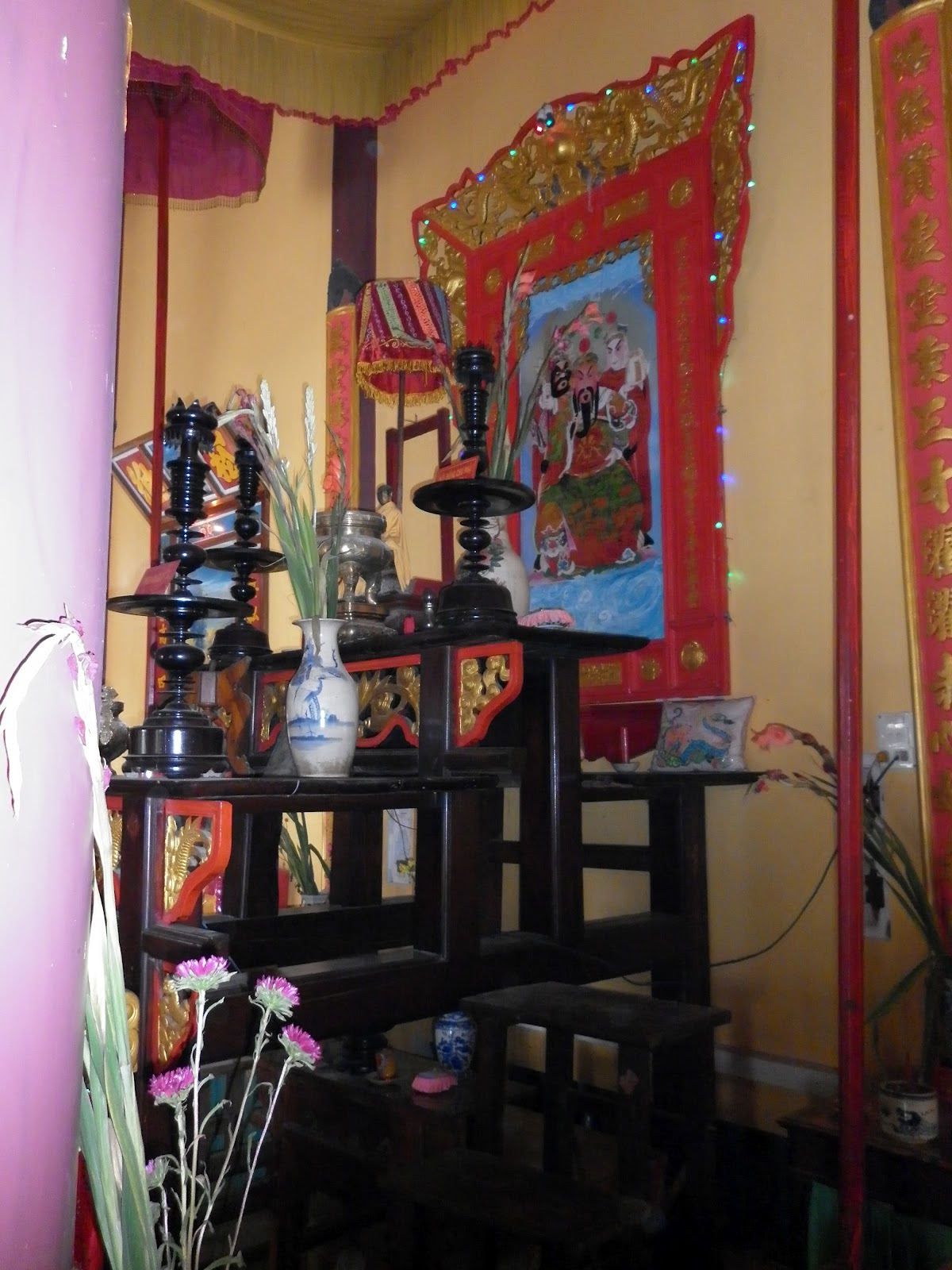 Thắp nhang trên các bàn thờ trong chùa.