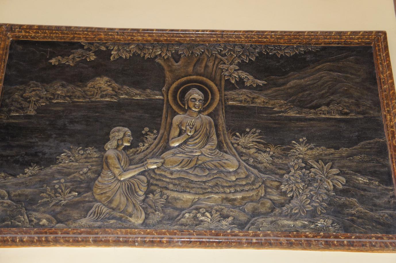Các tấm phù điêu do anh Bảy thực hiện.