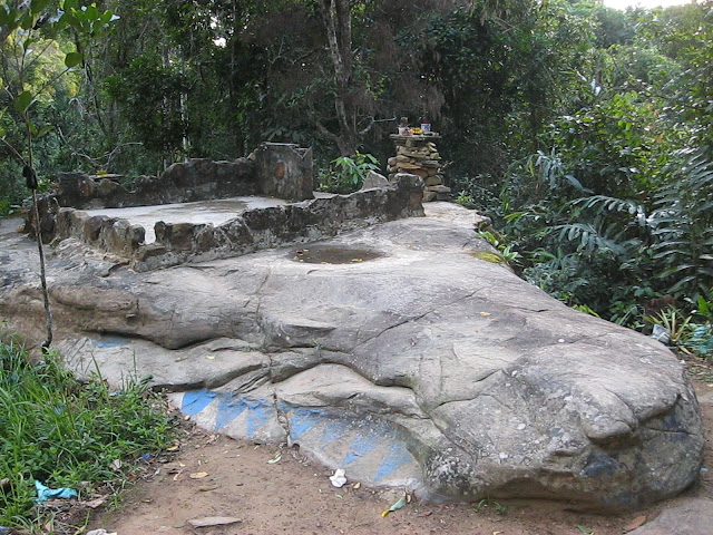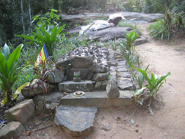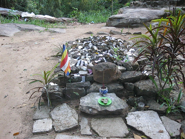 Nhận ra tôi là đồng hương, lại có "tín vật" đồng môn, ông Vang vui vẻ bắt chuyện. Ông Vang đưa tôi trở lại "kham maya kul" tức quần thể hang động luyện phép thuật. Chúng tôi vạch lá, len khe đá để đi mất nửa giờ đồng hồ mới đến nơi.